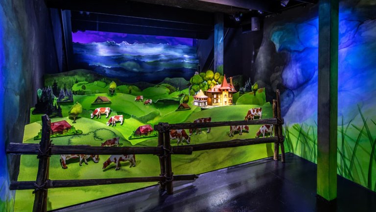 Auf diesem unterhaltsamen Rundgang werden alle Aspekte des Emmentaler Käses – von seiner Geschichte über die Herstellung bis zur Degustation – auf eindrucksvolle Weise erlebbar gemacht. Die Besucher durchlaufen mehrere thematisch inszenierte Räume, die mit multimedialen Inhalten ausgestattet sind. Projektionen, mechanische Elemente und mehrkanalige Audiobespielungen schaffen ein immersives Erlebnis.